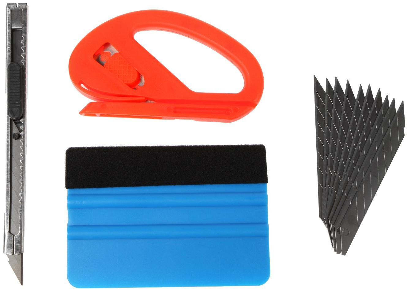 • нож-улитка (оранжевый) предназначен для резки пленки прямо на кузове автомобиля. Конструкция такого ножа разработана таким образом, чтобы исключить повреждение ЛКП — 1 шт.;