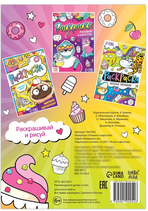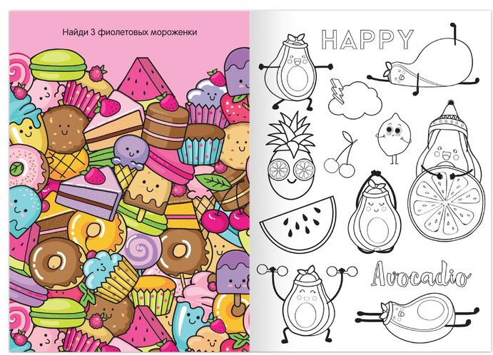 Раскраска формата А5 — то, что нужно, для первых творческих экспериментов. Удобный размер подойдёт для маленьких детских ручек, ребёнок не устанет, пока будет разрисовывать картинки. Крупные иллюстрации рассчитаны на детскую ручку. А персонажи настолько милые, что начинающему художнику тут же захочется их расцветить. |
