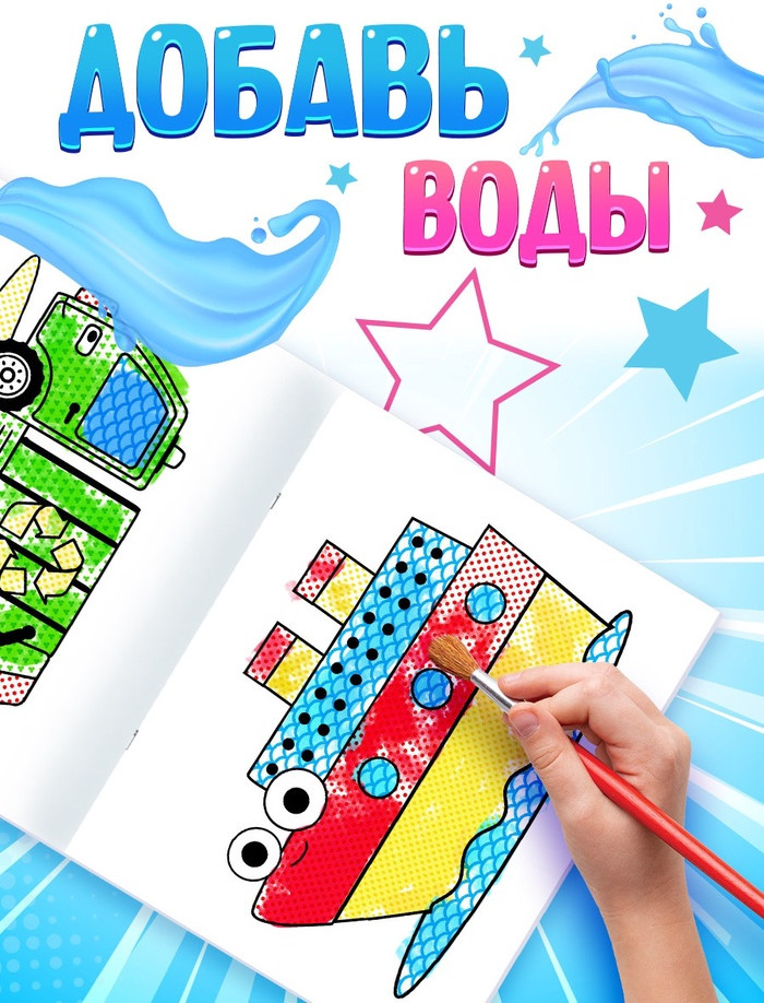Волшебная книга для рисования водой удивит малыша и его родителей. Книга выполнена из плотной бумаги. Внутри есть 8 рисунков для раскрашивания. Во время рисования малыш будет заполнять различные элементы рисунка, потренирует моторику и внимание. |