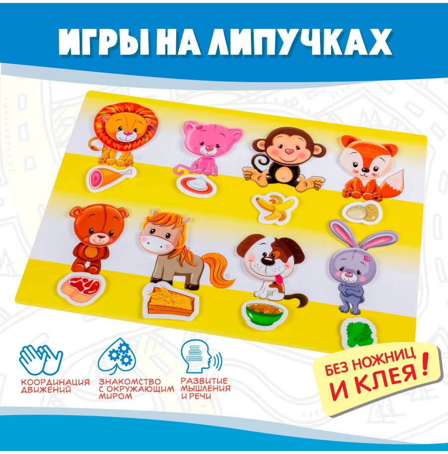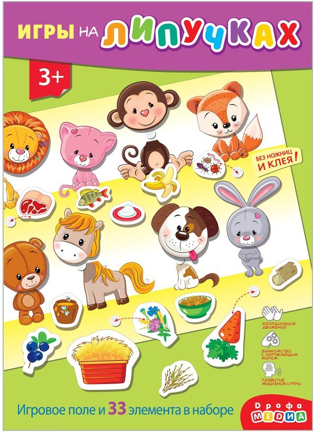 Дрофа-Медиа Игра настольная на липучках «Кто что ест?»В данный момент этот товар отсутствует в продаже. Возможно, у нас найдется аналогичный или похожий товар здесь. Серия: Игры на липучках Игра знакомит с дикими и домашними, хищными, травоядными и всеядными животными, учит пользоваться липучками, развивает речь, мышление, мелкую моторику. В составе пластиковая картинка-основа с уже приклеенными липучками и пластиковые картинки с мягкой нижней поверхностью — долговечные, не рвутся, не мнутся и не размокают. Детали крепятся к основе с помощью липучки «велькро» (как на одежде и обуви). Ребёнок должен подобрать необходимые части, чтобы сложить 8 животных и «накормить» каждого подходящей едой. Без клея и ножниц! |