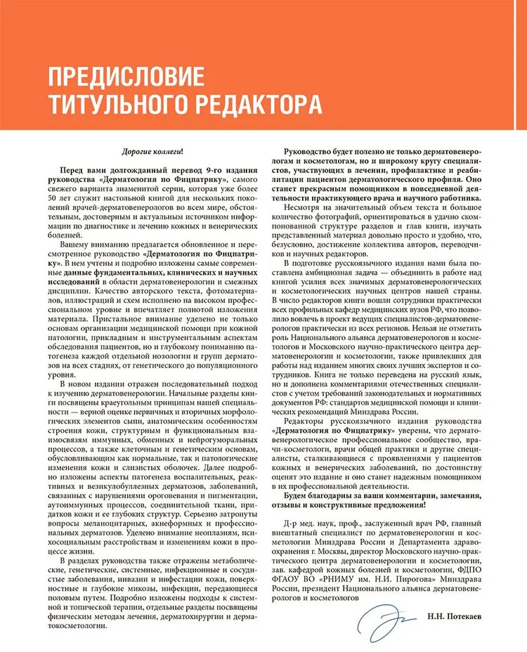 Серия: Золотая серия Перед вами третий том нового издания «Дерматологии по Фицпатрику» — перевод последней, девятой, версии полного руководства Fitzpatrick’s Dermatology, которое на протяжении десятилетий является одним из самых авторитетных и фундаментальных источников информации для специалистов по кожным заболеваниям во всем мире. Книга охватывает максимально широкий спектр вопросов по различным состояниям и нозологическим формам, содержит базовую современную информацию по диагностике, лечению и профилактике кожных заболеваний, отдельные части посвящены аспектам местной и системной терапии, хирургии и косметической дерматологии. |