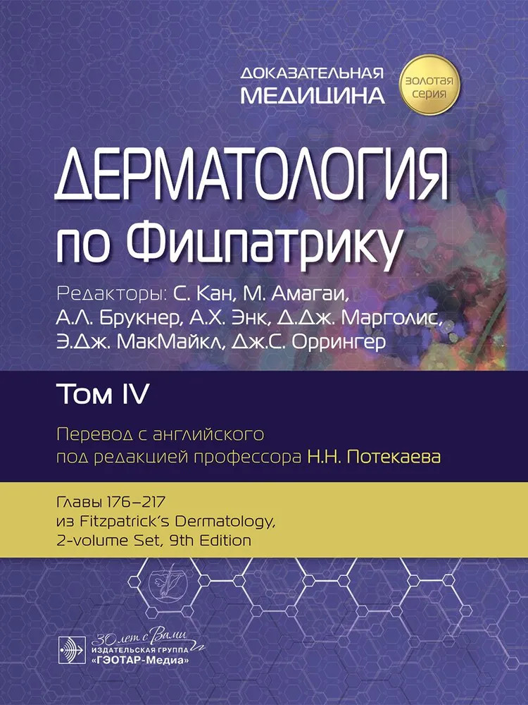 Серия: Золотая серия Перед вами четвертый том нового издания «Дерматологии по Фицпатрику» — перевод последней, девятой, версии полного руководства Fitzpatrick’s Dermatology, которое на протяжении десятилетий является одним из самых авторитетных и фундаментальных источников информации для специалистов по кожным заболеваниям во всем мире. Книга охватывает максимально широкий спектр вопросов по различным состояниям и нозологическим формам, содержит базовую современную информацию по диагностике, лечению и профилактике кожных заболеваний, отдельные части посвящены аспектам местной и системной терапии, хирургии и косметической дерматологии. |