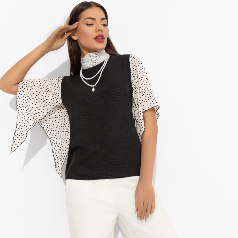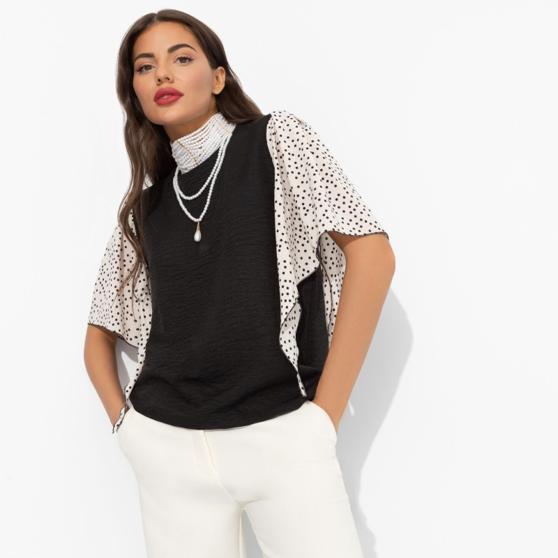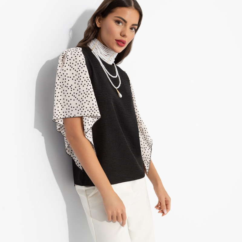 Charutti Блуза женская с дизайнерскими рукавами Значение моды (черная)