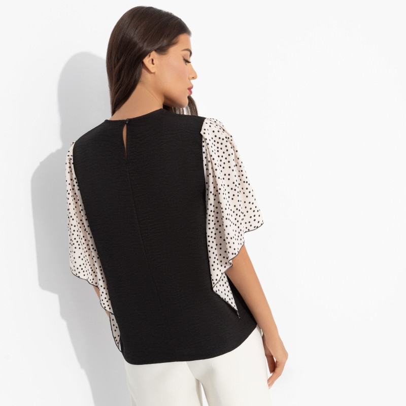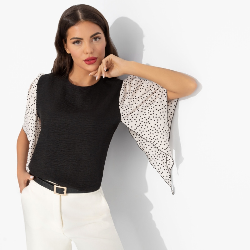 Charutti Блуза женская с дизайнерскими рукавами Значение моды (черная)
