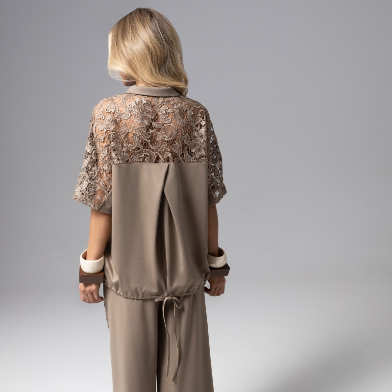 Charutti Рубашка женская комбинированная с кружевом Стильное дежавю