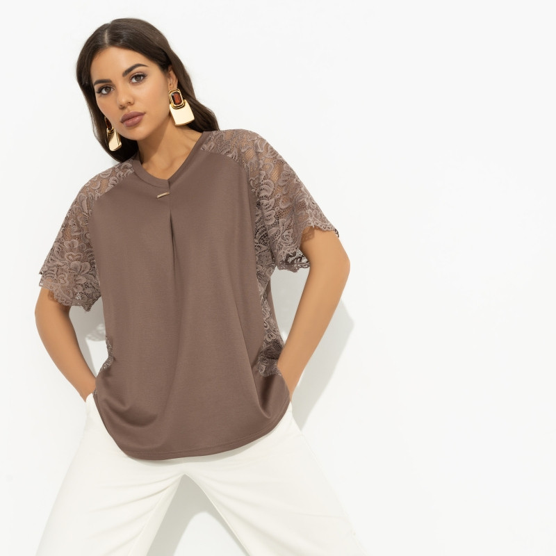 Charutti Футболка женская комбинированная с кружевом Гармония без усилий