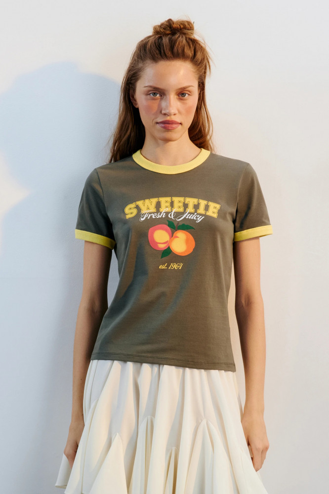 - Женская трикотажная футболка прямого кроя из мягкого, дышащего хлопка средней плотности - Короткие рукава с прямыми манжетами и прямой линией плеча. Круглый вырез горловины в рубчик без воротника. Прямой нижний край без разрезов - Футболка с принтом-надписью и контрастной отделкой из новой летней коллекции. Сочетай хлопковую футболку с любым низом и создавай расслабленные и стильные кэжуал-луки. Носи футболку с надписью отдельно или используй в качестве основы для трендовых многослойных луков. Универсальная футболка из хлопка подойдет для образов на каждый день, для домашнего отдыха и для занятий спортом, а также в офис и на учебу. Разбавь футболкой с принтом праздничные образы, чтобы сделать их более спокойными.