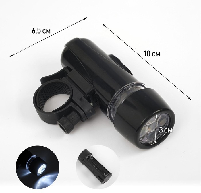 Этот велосипедный фонарь предназначен специально для вашей ночной или вечерней поездки. Универсальность и безопасность — вот главные характеристики данной модели. Вы можете взять его с собой, например, в поход, на рыбалку, или же он вам пригодится во время кемпинга. Также не забывайте о безопасности своей и окружающих на дороге. Данный фонарик не только отлично освещает перед вами дорогу, но и выполняет функцию фары для определения вашего механического транспорта на дороге в темное время суток. Тип светодиода: LED. Влагозащита: IPx5. Яркость: 50 Лм. Дальность освещения: до 15 м. Количество режимов: 3 (яркий, тусклый и мигание (стробоскоп)). Тип питания: от батареек типа ААА (в комплект не входят). Материал: ABS пластик. |