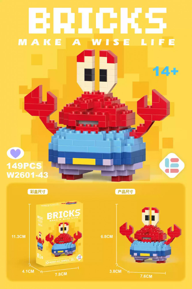Bricks Конструктор из мини-блоков «Мистер Крабс»В данный момент этот товар отсутствует в продаже. Возможно, у нас найдется аналогичный или похожий товар здесь. Конструктор из мини-блоков «Винни-Пух» по типу LEGO состоит из 149 деталей. Размер готовой игрушки — 11,3×7,8×4,1 см. Сборка фигурок из мини-блоков развивает у детей креативное мышление, внимательность и мелкую моторику. Изготовлен из безопасного пластика. Этот набор станет отличным подарком для детей, предоставляя часы увлекательной игры и обучения. Развивайте творческие способности вашего ребенка с этим конструктором, который поможет создать уникальные модели и обогатит игровые моменты! |