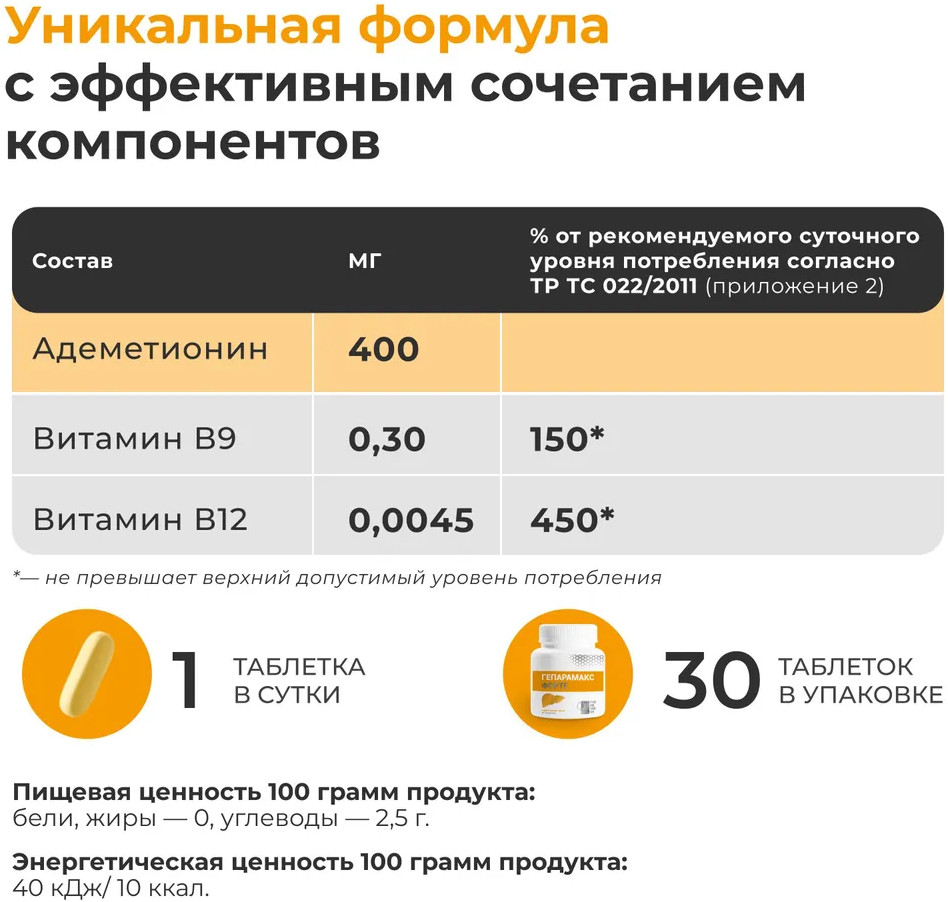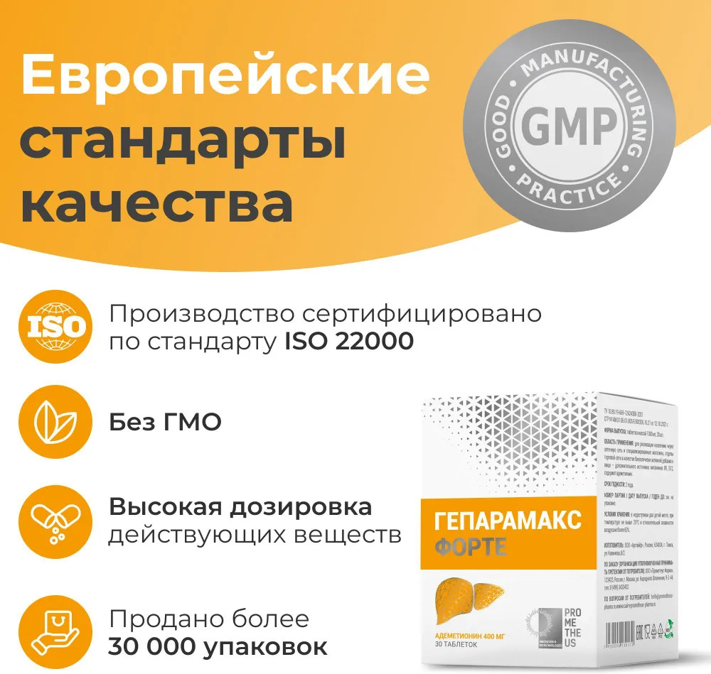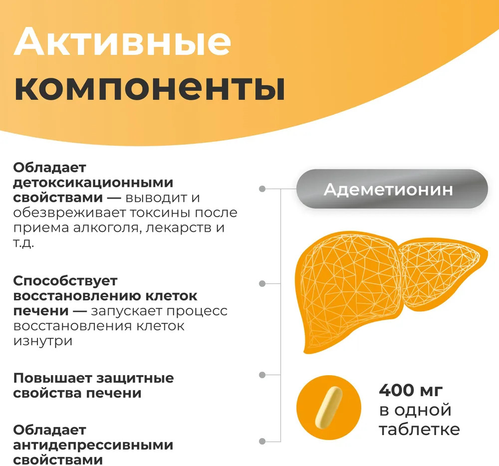 💳 Оплатить за товар можно при получении 🇰🇿 Есть бесплатная доставка по Казахстану 🎁 Копите бонусы с каждой покупки БАД для печени (Гепарамакс Форте Адеметионин) — таблетки, покрытые двойной оболочкой, способствуют улучшению общего самочувствия и функций печени. БАД способствует: выводу и обезвреживанию токсинов на клеточном уровне, нейтрализации свободных радикалов, стимуляции запуска естественного восстановления структуры клеток печение изнутри. Гепатопротектор обогащен витаминами B9 и B12. Адеметионин — аминокислота, которая присутствует во всех тканях человеческого организма, при заболеваниях печени концентрация ее снижается. Получить эту аминокислоту с пищей нельзя. Адеметионин участвует в синтезе фосфолипидов, которые составляют основу мембраны гепатоцитов (клеток печени), напрямую (а не только опосредованно — через синтез фосфолипидов) участвует в естественном механизме регенерации клеток печени, также Адеметионин участвует в синтезе глутатиона и таурина — веществ, которые необходимы для обезвреживания токсинов, уменьшает разрастание соединительной ткани в печени (её фиброз), улучшает образование и отток желчи из печени, повышает устойчивость гепатоцитов к действию свободных радикалов, оказывает антидепрессивное действие благодаря добавлению в состав витаминов группы B. |