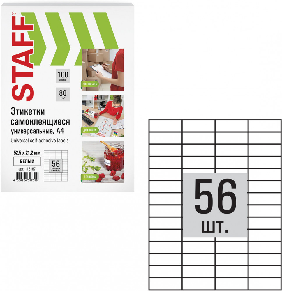 Универсальные самоклеящиеся этикетки Staff позволят быстро и качественно подготовить адресные наклейки, регистрационные номера, аннотации при помощи лазерного или струйного принтера. Изготовлены из матовой бумаги белого цвета плотностью 80 г/м2. Картонная упаковка содержит 100 листов формата А4, на каждом листе — пятьдесят шесть этикеток размером 52,5×21,2 мм. |