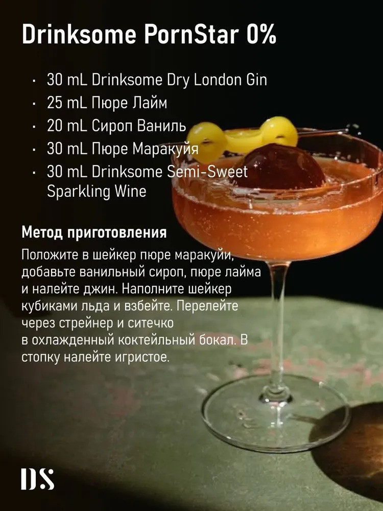 Безалкогольное вино Drinksome — современная альтернатива алкогольному игристому. Яркий и освежающий классический вкус напитка сохраняет атмосферу праздника и торжества. Безалкогольное игристое производится на основе ассамбляжа разных сортов винограда, кислотность которых сами регулируем. Не добавляем танинов и антоцианов и используем специальную газацию, чтобы сохранить классический вкус. В аромате преобладают тоны маракуйи и груши. Безалкогольное вино Drinksome отлично подойдет для любого праздника не только как самостоятельный напиток, но и как основа для безалкогольных коктейлей. Удивите гостей и приготовьте самостоятельно безалкогольные вариации любимых коктейлей, сохраняя классический вкус и аромат. |