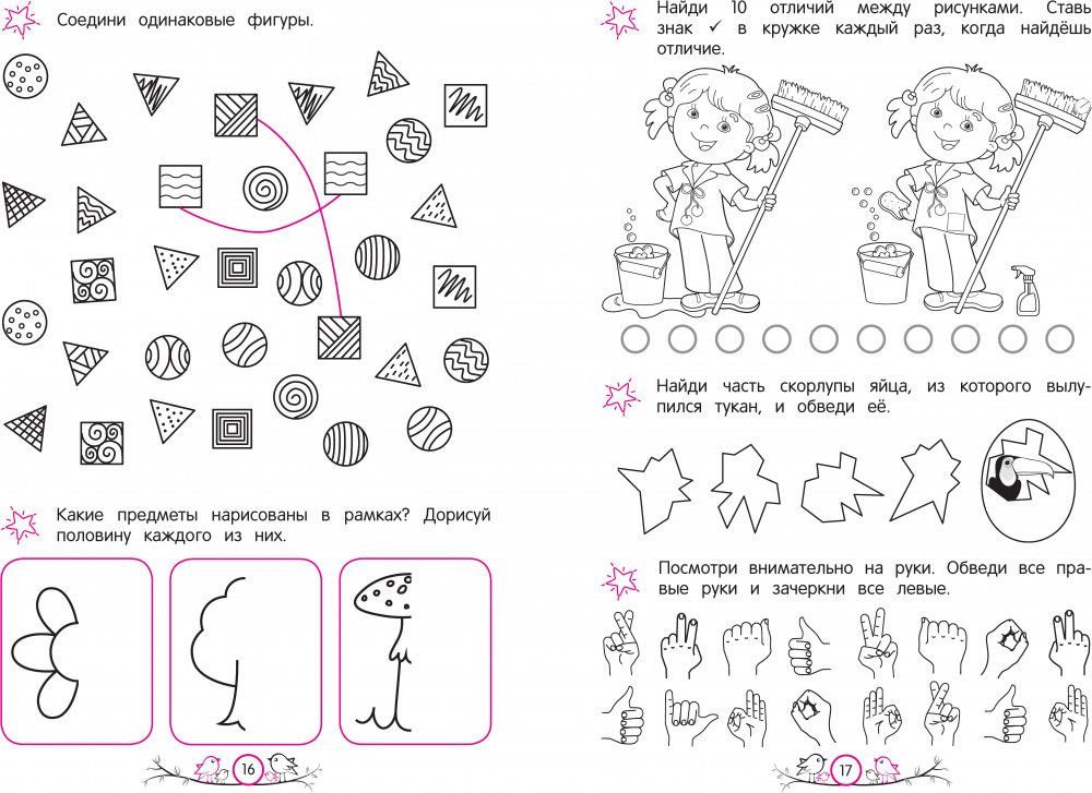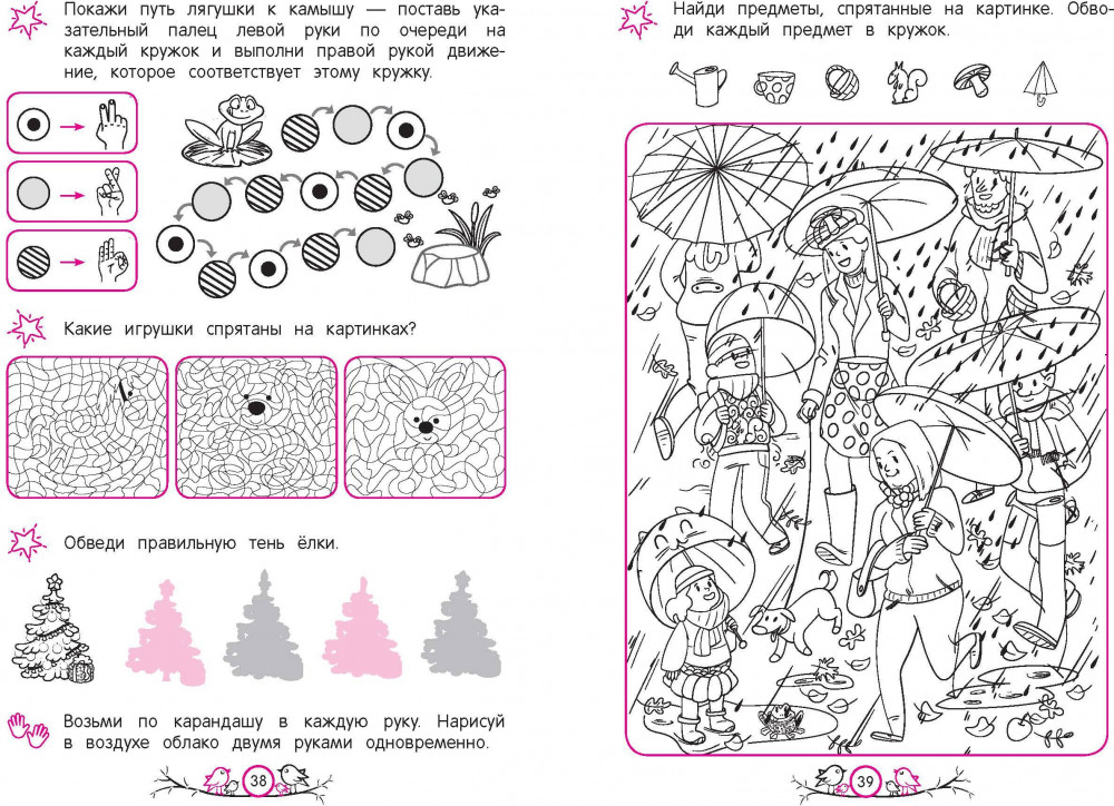 Развитие зрительного внимания и усидчивости. Для детей 4-6 летВ данный момент этот товар отсутствует в продаже. Возможно, у нас найдется аналогичный или похожий товар здесь. Серия: Занимаемся с нейропсихологом. Нейротренажер для дошкольников (обложка) Обучающее пособие от издательства «Эксмо» разработано практикующим нейропсихологом и поможет ребёнку развить зрительное внимание и усидчивость — важные составляющие подготовки к школе. Ребёнок, у которого хорошо развито внимание и который способен длительное время сосредоточенно выполнять задание, добьётся больших успехов в последующей учебной деятельности. Занимаясь, дошкольник будет находить отличия, дорисовывать половинки, проходить лабиринты, искать спрятанные в картинках предметы, соединять каждого героя с его тенью, а также научится концентрировать, переключать и распределять своё внимание, усваивать информацию визуально, разовьёт мышление, мелкую моторику, расширит кругозор. |