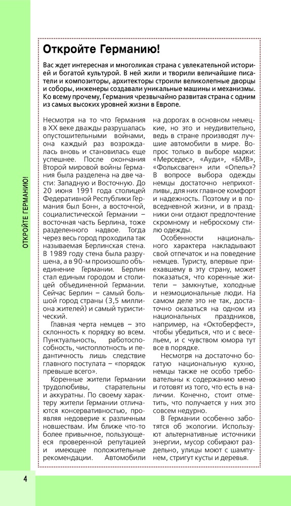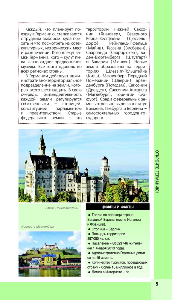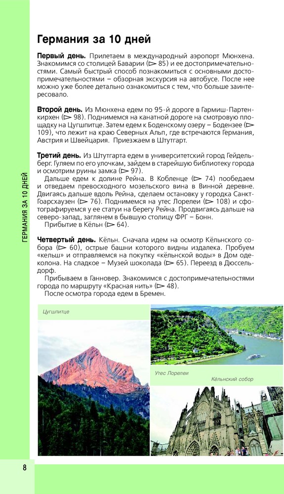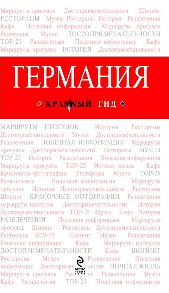 Германия + картаВ данный момент этот товар отсутствует в продаже. Возможно, у нас найдется аналогичный или похожий товар здесь. Серия: Красный гид Перед вами экспресс-гид по Германии. В нем содержится краткая информация о стране, советы, как лучше провести пять и десять дней, и 25 главных достопримечательностей. Также в книге вы найдете описания самых интересных мест каждого района страны. Гуляйте, знакомьтесь, восхищайтесь полной средневекового романтизма Германией и получайте нужную информацию в режиме нон-стоп! |
