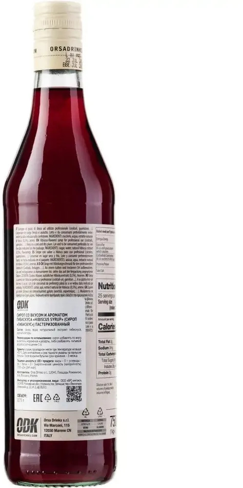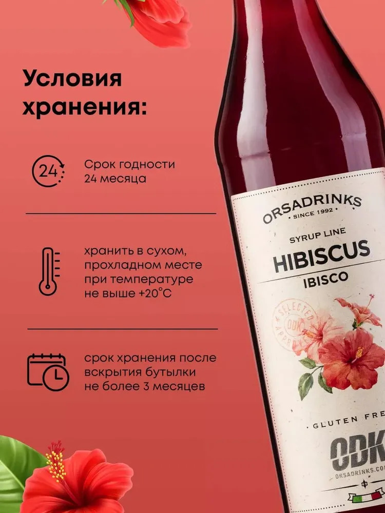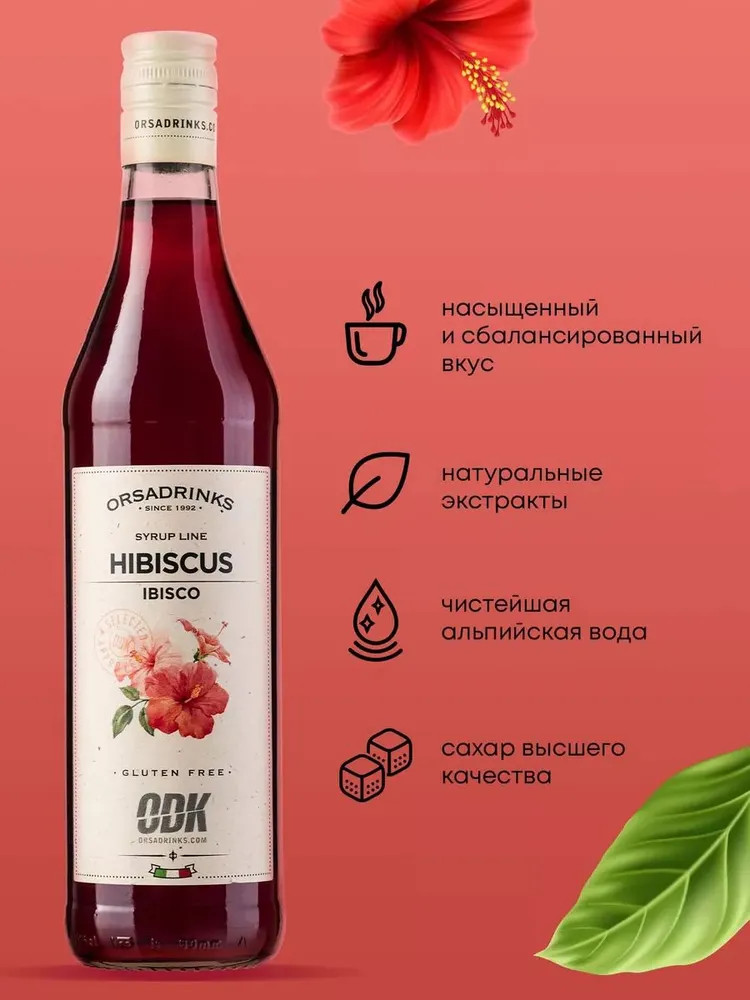 Цветочный вкус гибискуса знаком многим, теперь этот ингредиент представлен сахарным сиропом с одноименным названием. Сироп для коктейлей «Гибискус» раскрывается кисловато-сладкими оттенками. Его цветочные ноты хорошо ощущаются несмотря на сладость, присущую сиропам. Вкус гибискуса освежает, добавляет напиткам приятные терпковатые ноты и красивый насыщенный красный цвет.