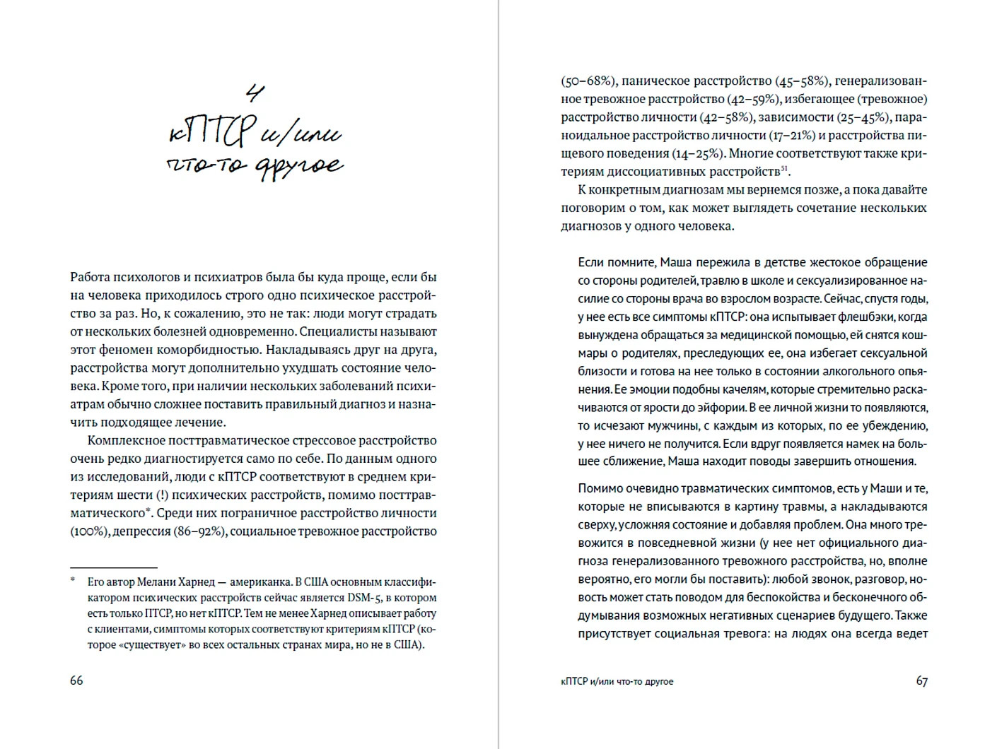 Как много людей страдает от того, что происходило с ними в далеком прошлом, воспроизводя старые паттерны поведения, заново переживая свою травму, наблюдая мир через ее призму, избегая настоящей жизни — и не догадываясь об этом. Книга психологов и специалистов по диалектико-поведенческой терапии Кати Климочкиной и Лены Фоер написана для таких людей и посвящена комплексному посттравматическому стрессовому расстройству. |