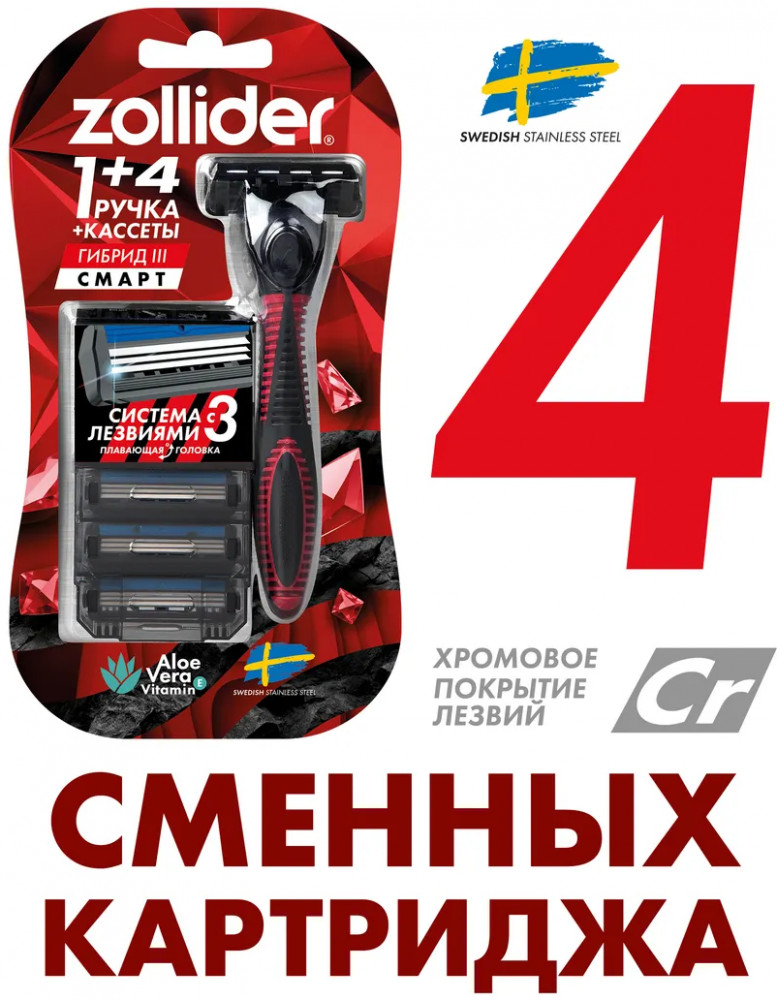 Zollider Станок для бритья с четырьмя сменными картриджами «Smart»+88