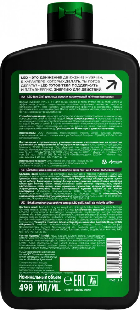 LЁD Гель для душа мужской 3 в 1 «Улётная свежесть»