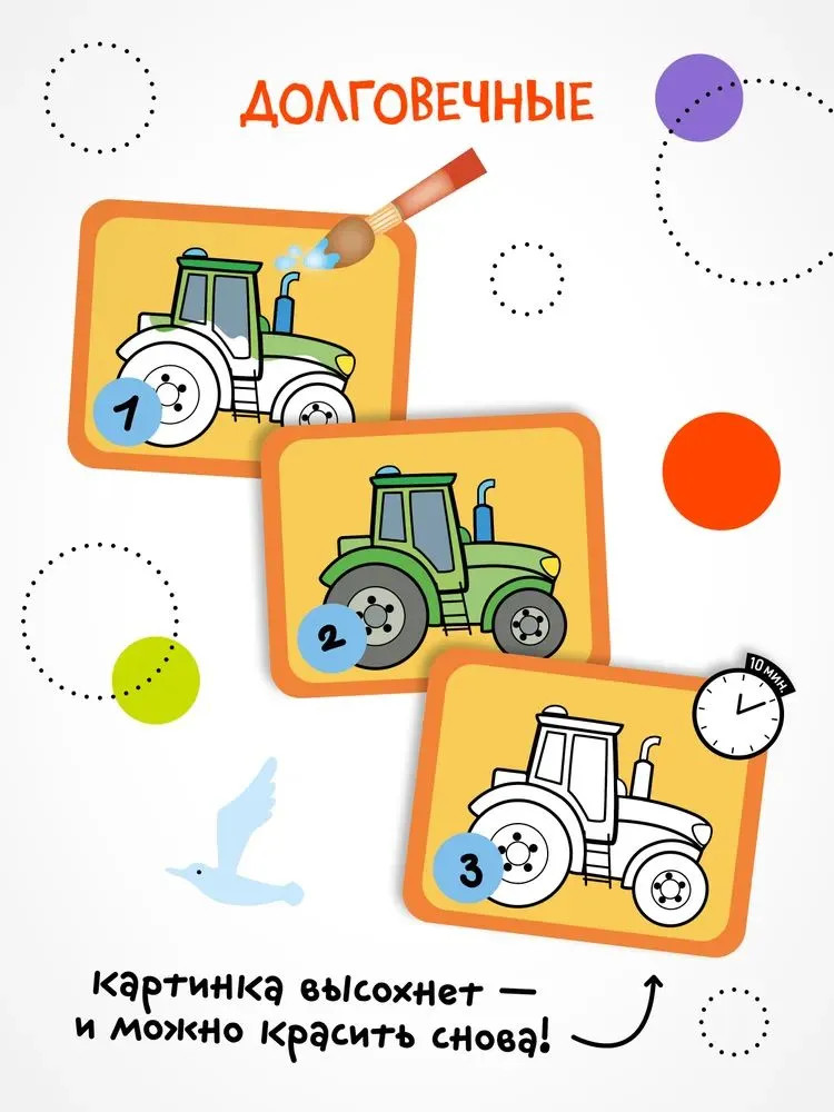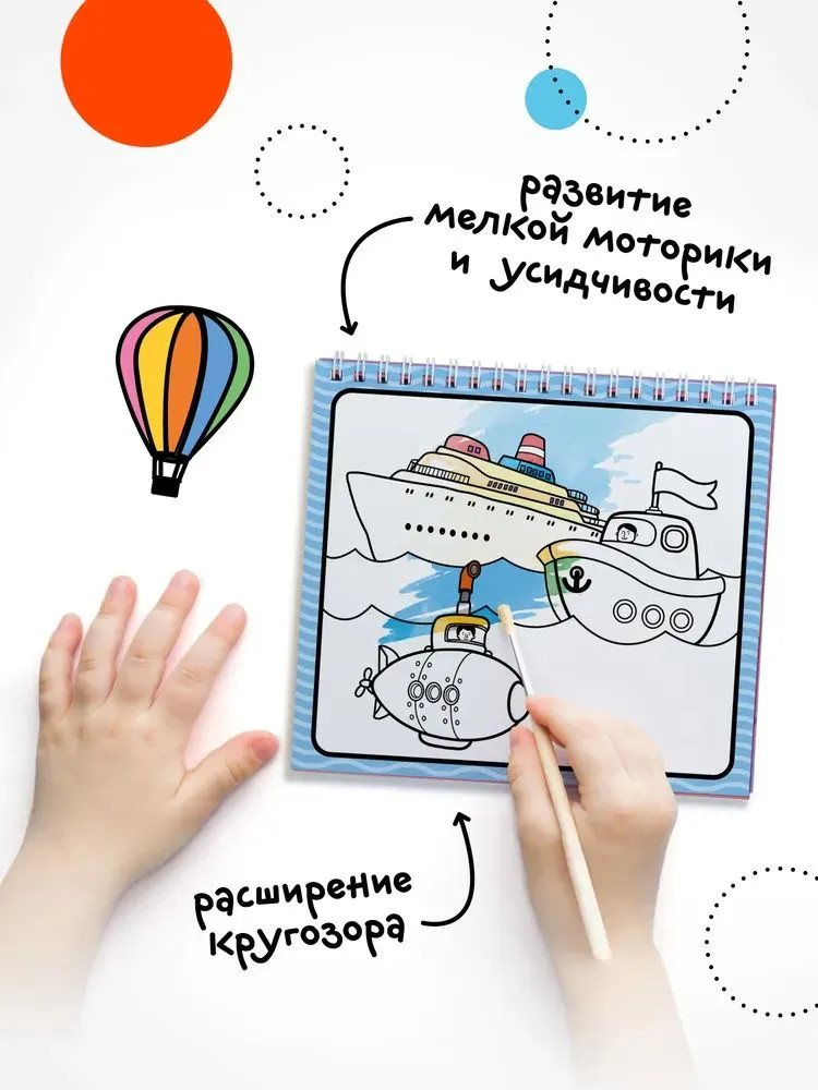 Серия: Многоразовые водные раскраски Книга «Транспорт» серии «Многоразовые водные раскраски» — это настоящая находка для юных художников! Странички для раскрашивания сделаны из картона и покрыты специальной краской. При контакте с водой она становится прозрачной, а рисунок — цветным! Стоит лишь провести мокрой кисточкой — и происходит настоящее волшебство. Какие виды транспорта можно встретить в городе? Какого цвета подводная лодка? Забавные рисунки точно понравятся ребенку, а сам процесс раскрашивания — не только увлекательное, но и полезное занятие для развития воображения, внимательности и мелкой моторики. |