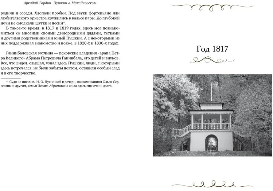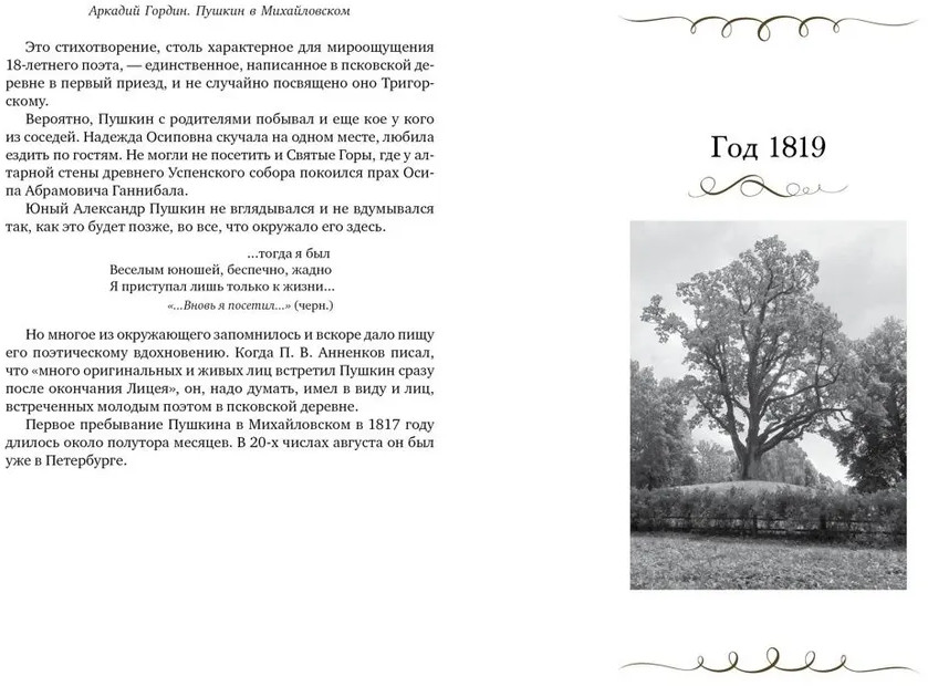 Серия: Города и люди «Пушкин в Михайловском» — книга известного пушкиниста А. М. Гордина. Опираясь на обширный фактический материал, в том числе на архивные источники, автор увлекательно рассказывает о значении Михайловского в судьбе А. С. Пушкина. Михайловское, вотчину Абрама Ганнибала, «арапа Петра Великого», Пушкин впервые посетил в 1817 году, в последний раз — в 1836 году; встречи поэта с Михайловским охватывают два десятилетия: он приезжал сюда в разные периоды своей жизни. Здесь было создано около ста произведений, в том числе трагедия «Борис Годунов», главы романа «Евгений Онегин», поэма «Граф Нулин», стихотворения «Деревня», «Пророк», «Я помню чудное мгновенье...», «Вновь я посетил...». Сюда поэт стремился в самые тяжкие минуты жизни. |