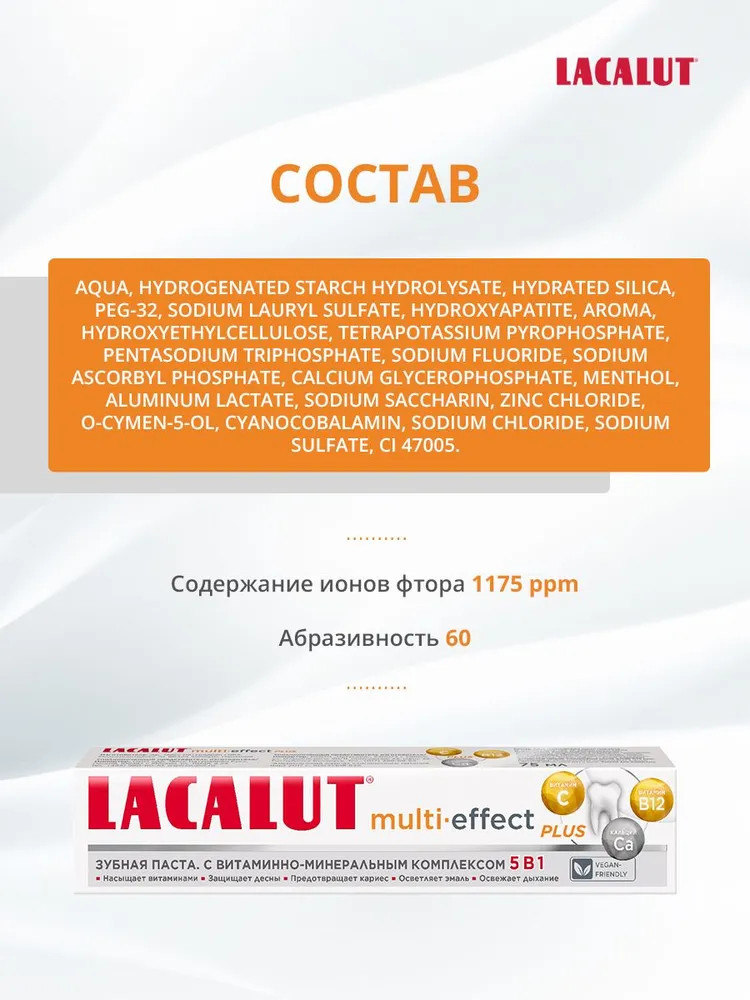 Lacalut Зубная паста с витаминами и минералами для комплексного ухода 5 в 1 «Multi-effect plus»