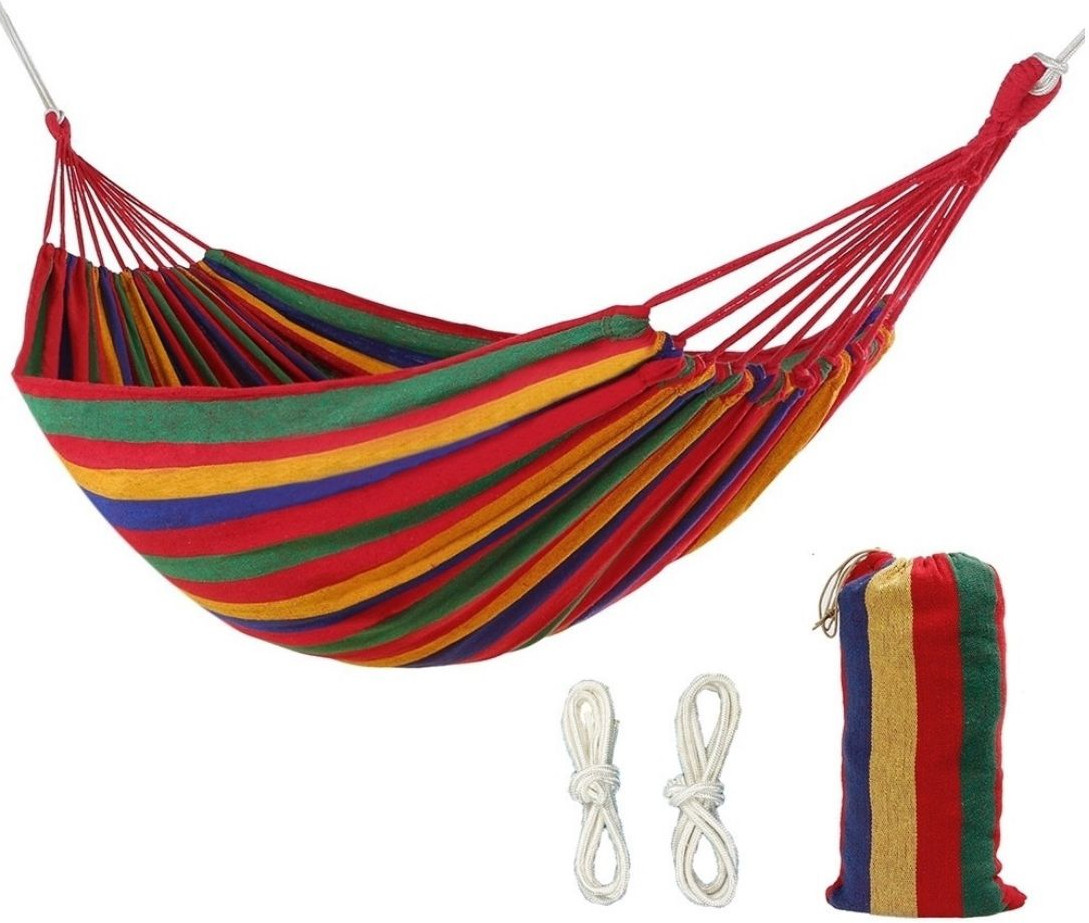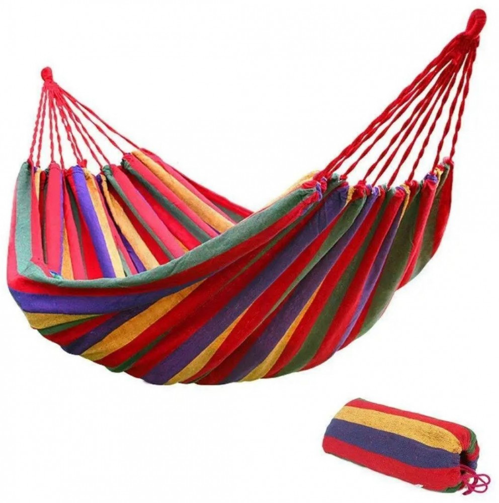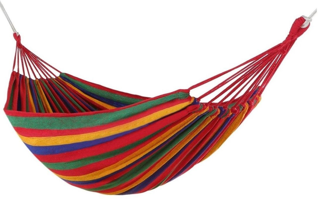 Что может быть лучше, чем покачиваться в гамаке, наслаждаясь теплыми лучами летнего солнышка и холодным апельсиновым соком в стакане с трубочкой? Конечно же ничего, а потому, гамак-качели из полотна станет отличным приобретением для летнего отдыха и подарит Вам ни с чем не сравнимое расслабление на свежем воздухе. Гамак имеет компактные размеры в сложенном виде и его легко можно натянуть на даче, на лужайке загородного дома или даже взять с собой на отдых у моря. Яркий и красочный дизайн гамака добавит к вашему отдыху позитива и хорошего настроения, а крепкое полотно легко выдержит вес взрослого человека.