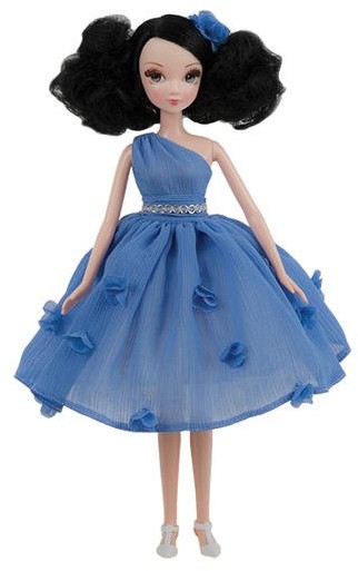 На вечеринку Полина Sonya Rose надела, как это водится у кукол Соня Роуз удивительное по своей красоте платье. Ассиметричное - открывающее одно плечо и с пышной юбкой, украшенной небольшими объёмными цветочками. К тёмным волосам Полины очень идёт насыщенный васильковый цвет её наряда.
