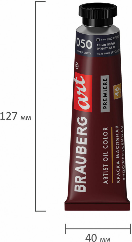 Brauberg Краска масляная художественная, цвет 050 серая пейна