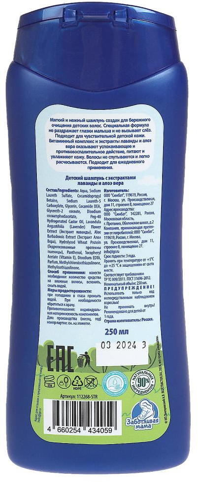 Заботливая мама Шампунь детский с экстрактами лаванды и алоэ вера