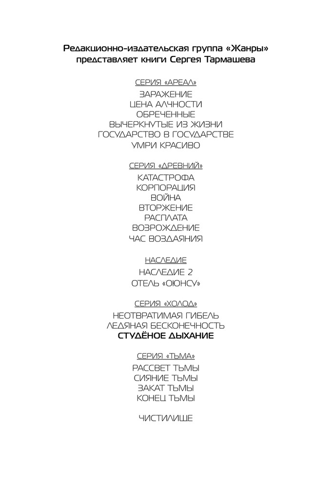 Книга отличная, как и все книги С. Тармашева. Это третья книга цикла "Холод". Любителям фэнтези и фантастики обязательна к прочтению. Очень актуальна сейчас.