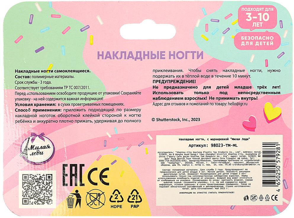 Милая Леди Ногти накладныеВ данный момент этот товар отсутствует в продаже. Возможно, у нас найдется аналогичный или похожий товар здесь. Серия: Super model Накладные ногти ТМ «Милая леди» непременно понравятся маленькой моднице. Девочки в любом возрасте хотят быть красивыми. Специально для юных модниц был разработан этот набор накладных ногтей. Маленькая принцесса обязательно оценит стильный дизайн и модную упаковку. Развивайте чувство стиля и вкуса, учите девочку создавать свой неповторимый образ вместе с косметикой и аксессуарами ТМ «Милая леди». |