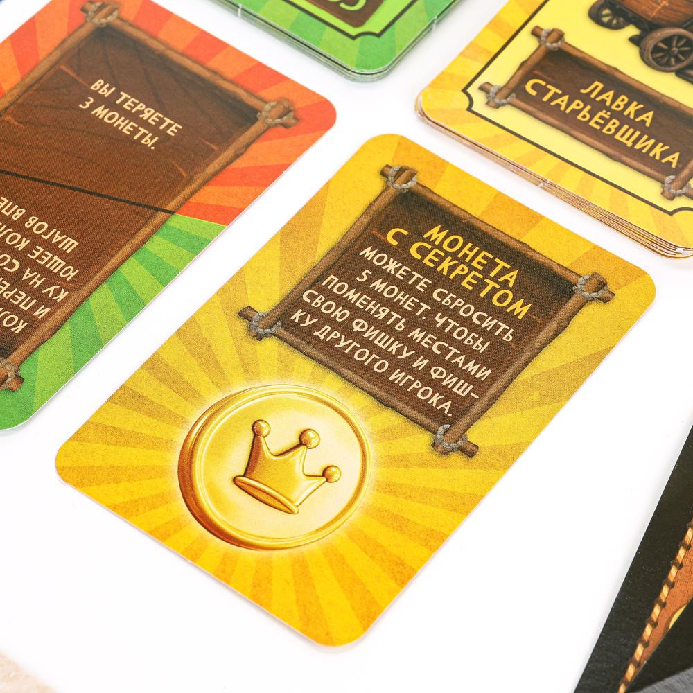 • 40 карточек: 12 карт «Закон», 11 карт «Лавка старьёвщика», 12 карт «Сокровище» & «Пакость», 4 карты «Большой кошель», 1 карта с 4 жетонами персонажей;