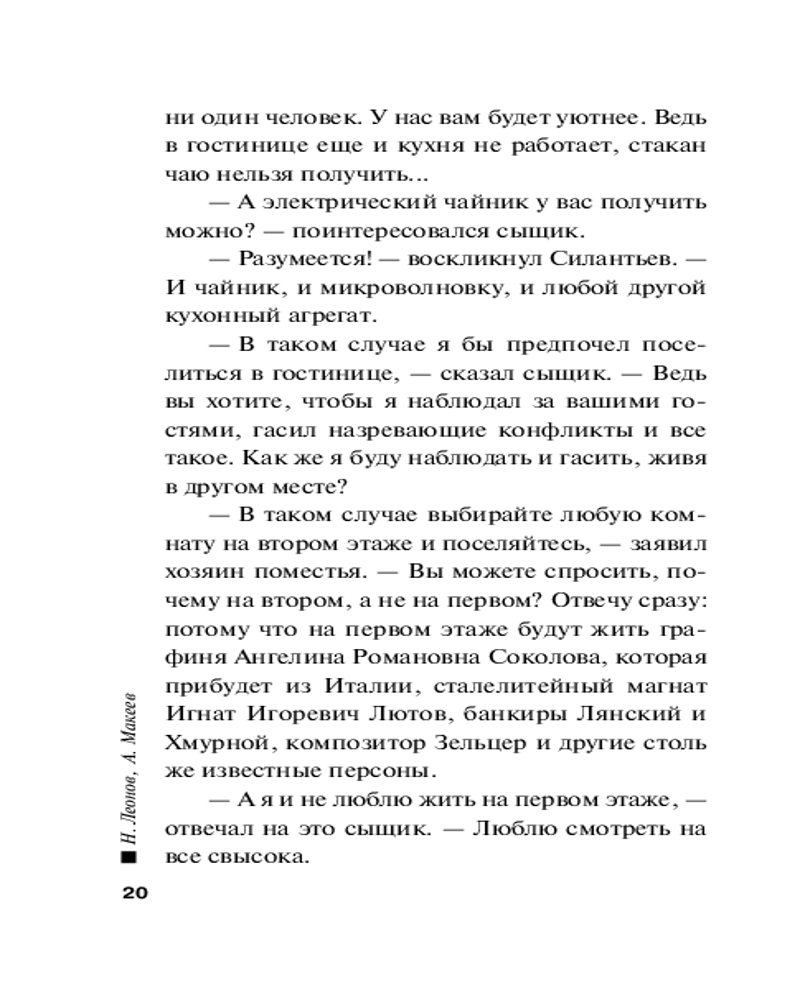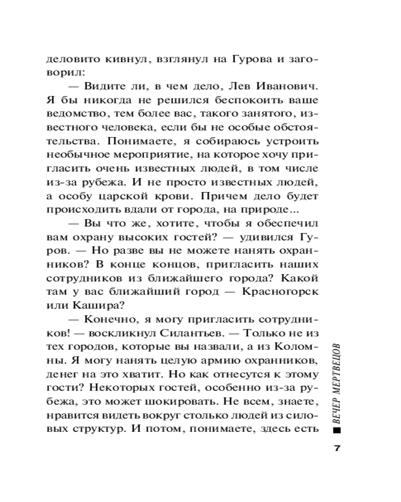 Серия: Русский бестселлер (обложка) Полковник МВД Лев Гуров получает приглашение на торжественный ужин от известного российского олигарха. Ожидается, что в усадьбу миллионера съедутся крупнейшие бизнесмены, художники и музыканты — весь цвет общества. Вечер обещает быть незабываемым... Неожиданно в разгар праздника одна из дам заявляет, что у нее пропали фамильные драгоценности. Одновременно исчезает сотрудник персонала, обслуживающий банкет. Неужели произошла банальная кража? Гуров начинает расследование и вскоре на берегу реки обнаруживает труп пропавшего слуги. Но драгоценностей при нем нет... Сыщик понимает, что произошло убийство, и это только часть преступного замысла. Что еще придумает злодей, оставаясь на свободе?.. |