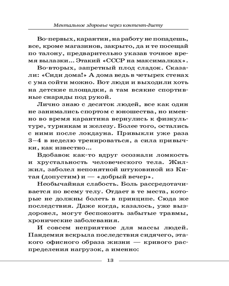 Серия: Звезда соцсети. Подарочное издание В современном мире, где мы не расстаемся с телефоном ни на минуту, едим под видеоролики и постоянно «залипаем» в контент, наша нервная система перегружается. Пассивность и закрытость от внешнего мира становятся нашими постоянными спутниками, пока мы наслаждаемся мгновенным удовольствием от потребления различных медиапродуктов. |