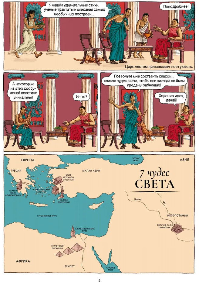 Серия: Комиксы Тысячелетиями эти сооружения древности восхищали путешественников, их прославляли писатели и поэты, о них слагали легенды... Настало время узнать всю правду о самых удивительных постройках Древнего мира, получивших название «7 чудес света». Этот яркий и увлекательный комикс расскажет нам историю их создания, секреты строительства и причины исчезновения. Мы совершим путешествие сквозь века и цивилизации, чтобы своими глазами увидеть правителей и учёных, архитекторов и мастеров, послушать их споры, понаблюдать за работой и, наконец, узнать, на чём висели сады Вавилона, что натворил Герострат и кому мы обязаны словом «мавзолей». |