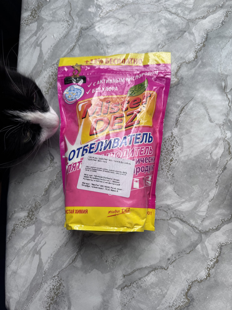 Пятновыводитель Mister Dez отлично подходит для всех типов тканей, включая деликатные, и может использоваться как в стирке, так и для предварительной обработки пятен. Всего несколько граммов средства в сочетании с горячей водой — и вы получаете мощный раствор для выведения самых стойких загрязнений. Можете быть уверены, что данный кислородный очиститель поможет справиться даже с самыми сложными пятнами.