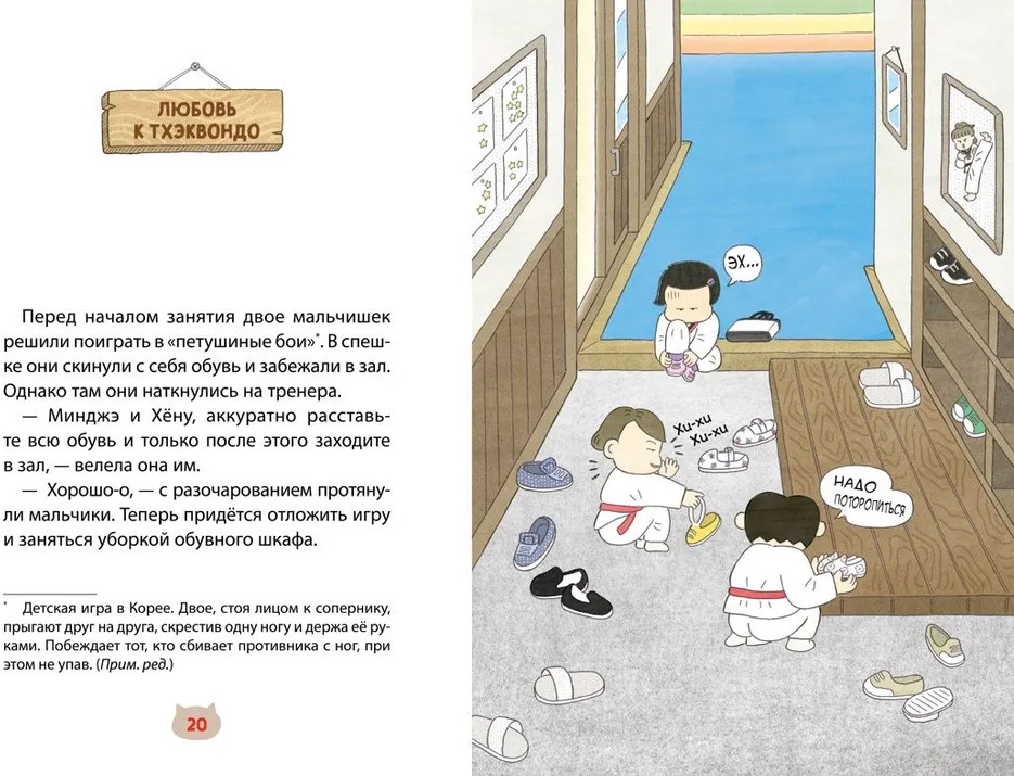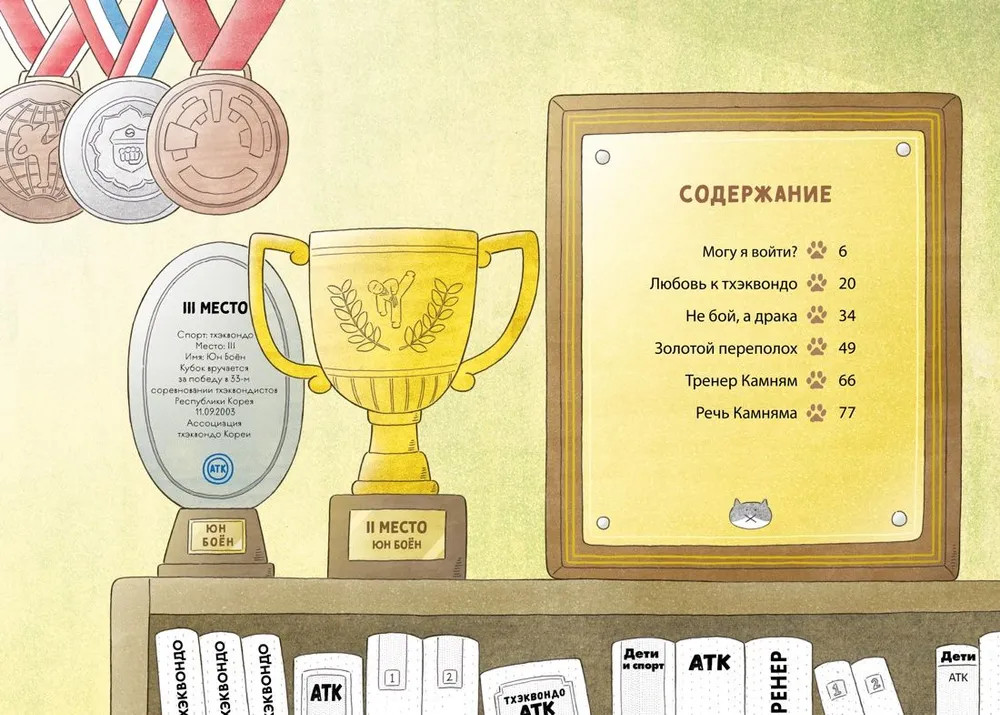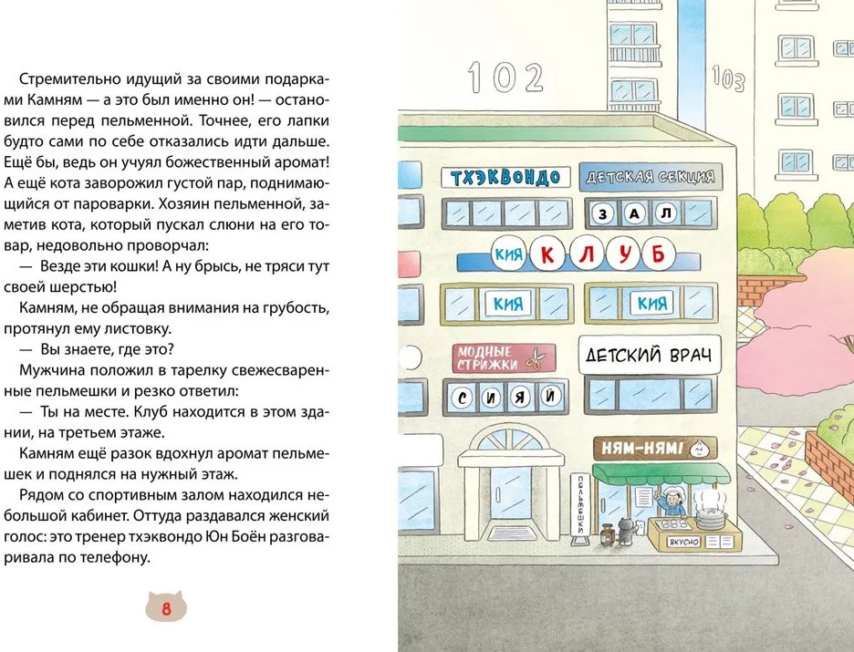 Серия: Помощник с лапками. Корейский бестселлер Может ли кот овладеть боевым искусством? У Камняма в этом нет никаких сомнений. Отработанный удар лапкой, уважение к сопернику и красивая белая форма — и вот ты уже чемпион! А ещё важно помнить, что твоя цель — помогать другим. Поэтому, когда в пельменной неподалёку от клуба тхэквондо произошло ограбление, Камням тут же поспешил на помощь! Удастся ли ему поймать вора? Лапы вверх, похититель! |