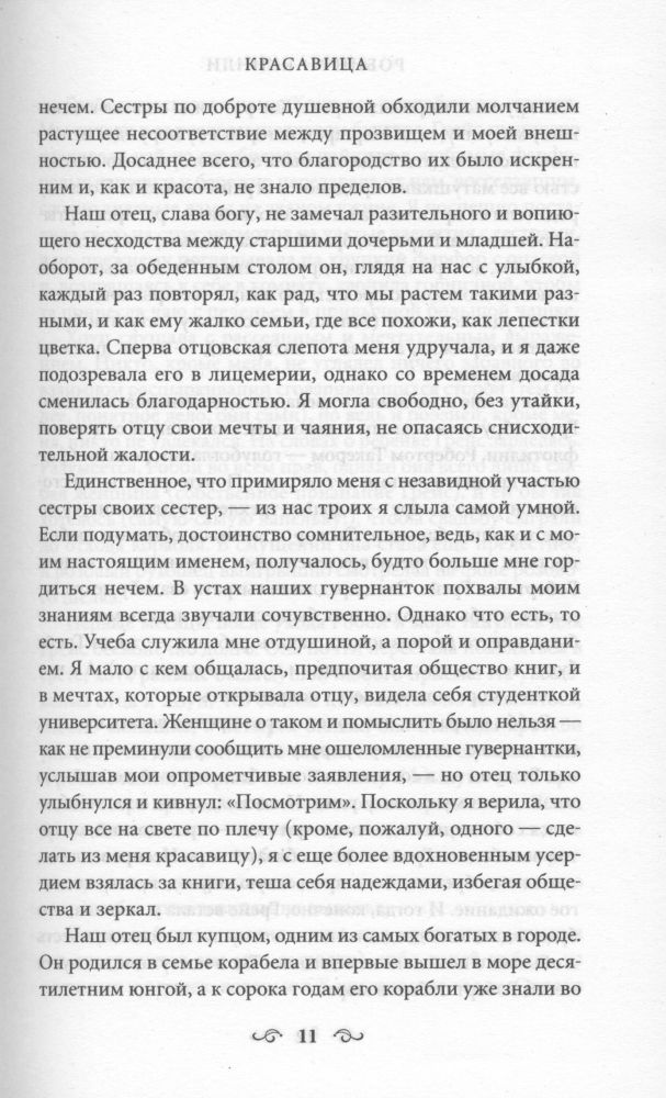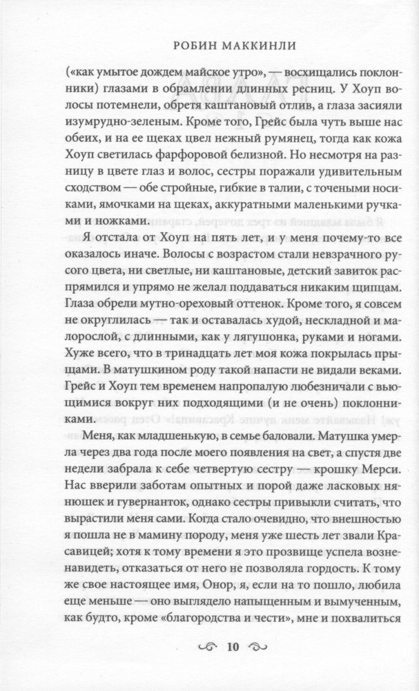 Питер Бигл, автор, может быть, лучшей на свете фантастической сказки «Последний единорог», назвал «Красавицу» самой восхитительной книгой, прочитанной им за многие годы. Характеристика лестная, тем более что действительно трудно выжать что-либо новое из раскрученного классического сюжета, который кто только не использовал в своем творчестве — от Апулея до сочинителей наших дней. Не говоря уже о массе популярных экранизаций. Роман Маккинли удивит читателя тем, что герои в нем похожи и непохожи на любимых персонажей из сказки и мир здесь реалистичнее и суровее, чем в привычной с детства истории, закрепившейся в нашей памяти.