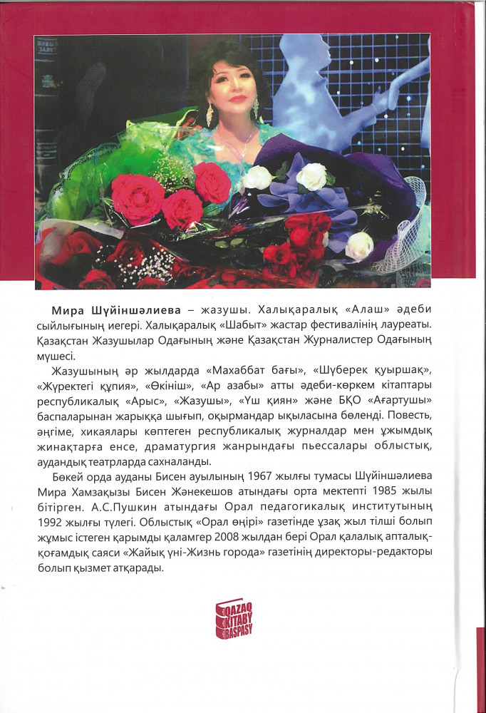 Республика оқырмандарына әңгіме, хикая, повесть, драматургия жанрындағы әдеби көркем кітаптарымен кеңінен танылған талантты жазушы Мира Шүйіншәлиеваның «Өкініш» атты кітабы қазіргі көркем прозаның алдыңғы қатарынан орын алады. Тіпті, атақты сыншы, әдебиет зерттеушісі Б.Сарбалаұлы «Өкініш» повесін роман деп бағаласа, белгілі ғылым докторы, әдебиеттанушы Г.Орда бұл еңбек жайлы газет-журналдарға көптеген мақалалар жазды. |