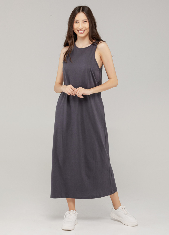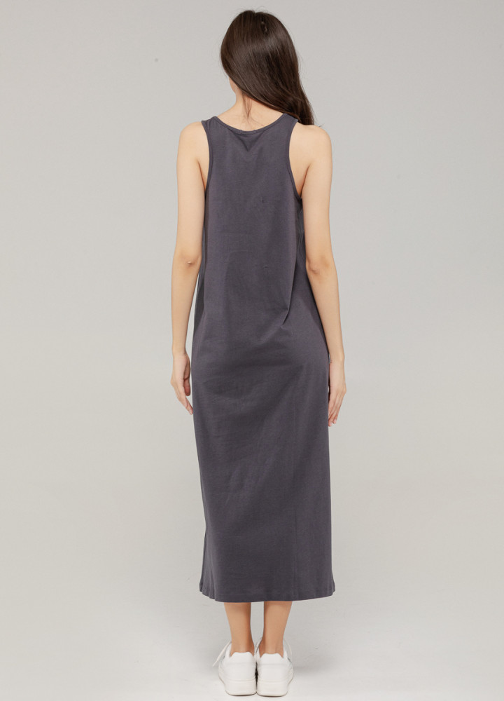 Свежий и универсальный образ на лето — это женское платье макси в графитовом оттенке. Благодаря свободному крою, отсутствию рукавов и лёгкому материалу, модель дарит максимальный комфорт даже в жаркие дни. Идеально для повседневных прогулок, отдыха и городской жизни.
