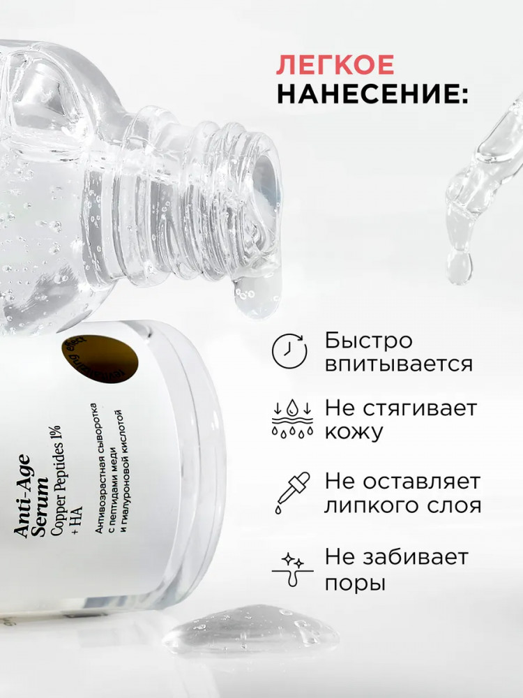 Отзывы «Сыворотка для лица антивозрастная с пептидами меди 1% и гиалуроновой кислотой «Anti-Age Serum Copper Peptides 1% + HA»»