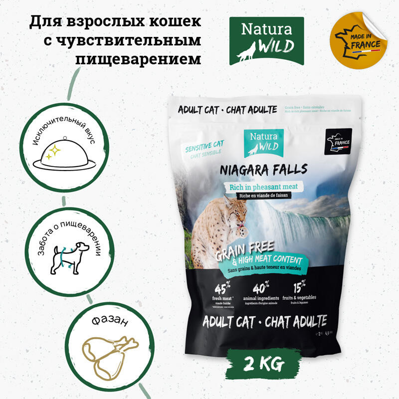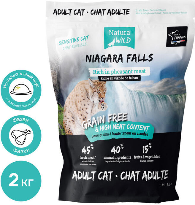 Natura Wild Беззерновой корм для взрослых кошек с чувствительным пищеварением с фазаном «Niagara Falls»