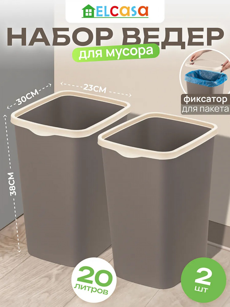 Набор 2 белых вёдер для мусора с фиксаторами от бренда El Casa поможет поддерживать чистоту в вашем доме, офисе или на улице. Каждый мусорный контейнер выполнен из полипропилена. Этот вид пластика считается наиболее безопасным, так как не содержит бисфенол А и не выделяет вредных веществ.