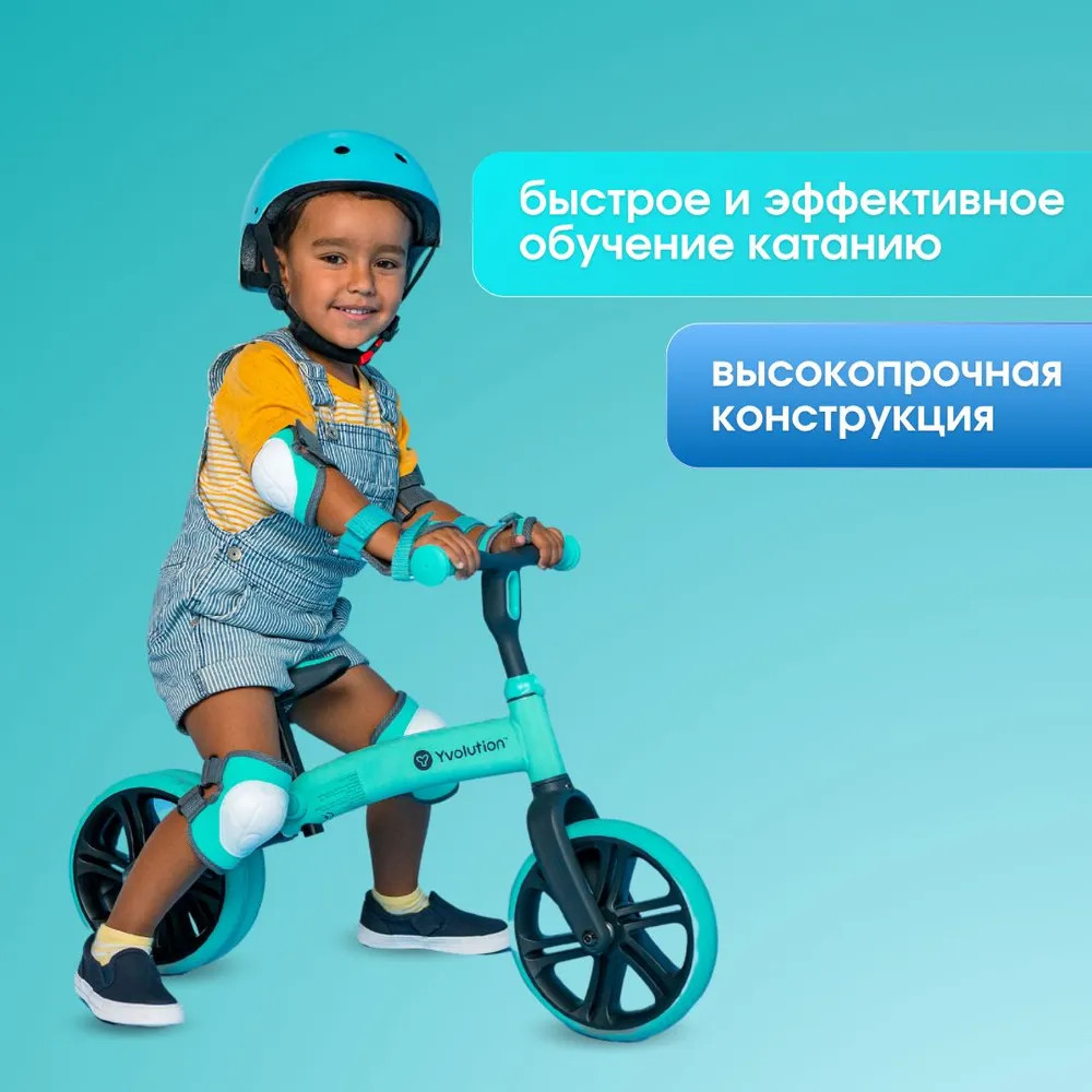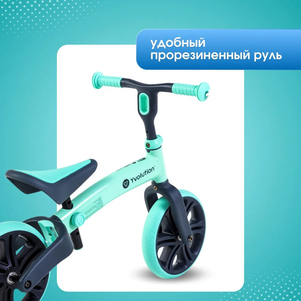 Беговел Yvolution «Velo Junior» — стильный и оригинальный беговел с двойным задним колесом, который сделает прогулки малыша веселыми и увлекательными, а также научит ребенка держать равновесие. Беговел «Velo Junior» предназначен для детей в возрасте от 1.5 лет и станет прекрасным первым балансиром и полезным детским транспортом. Эргономичное сиденье и удобный руль регулируются по высоте в три положения. Ваш ребенок будет легко доставать ногами до земли. Заднее колесо беговела можно сделать одинарным или двойным для меньшей или большей устойчивости на дороге, что станет прекрасной возможностью для обучения и тренировки равновесия ребенка.
