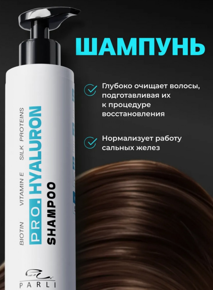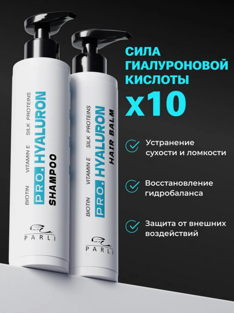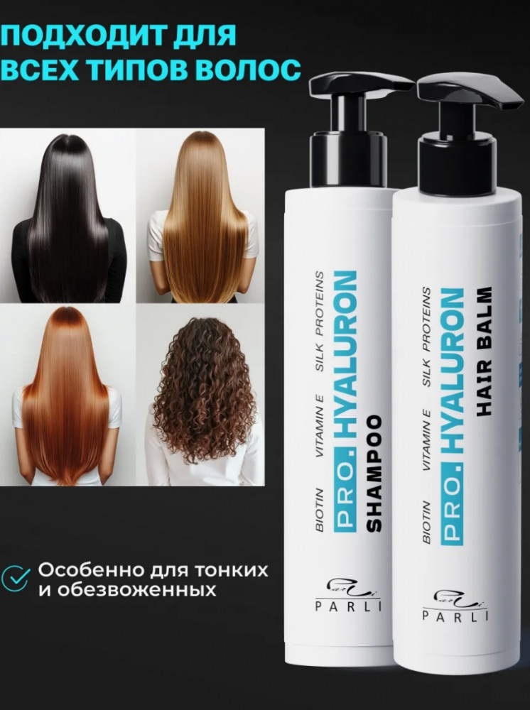 Шампунь и бальзам: Aqua, Cetearyl Alcohol, Behentrimonium Chloride, Cetrimonium Chloride; Cyclopentasiloxane, Dimethiconol, Phenyl Trimethicone, Sodium Hyaluronate; Hydrolyzed Protein Silk, Persea Gratissima (Avocado) Oil; Orbignya Oleifera (Babassu) Seed Oil, Tocopheryl Acetate, Retinyl Palmitate; Biotin, Parfum (Fragrance), Phenoxyethanol; Disodium EDTA, ВНТ.