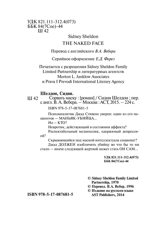 Сорвать маскуВ данный момент этот товар отсутствует в продаже. Возможно, у нас найдется аналогичный или похожий товар здесь. Серия: Шелдон-exclusive Психоаналитик Джад Стивенс уверен: один из его пациентов — МАНЬЯК-УБИЙЦА… |