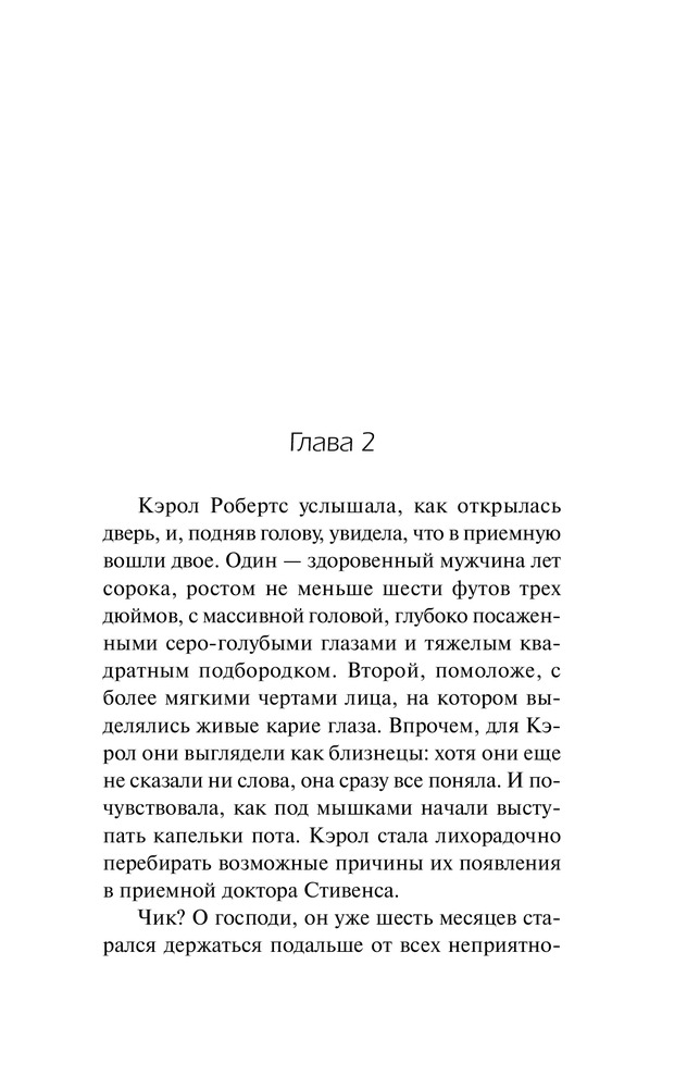 Прочла часа за 2-3... В начале сюжет затягивает... А вот концовка немного разочаровала. Ну если в целом, то неплохой детектив ))
