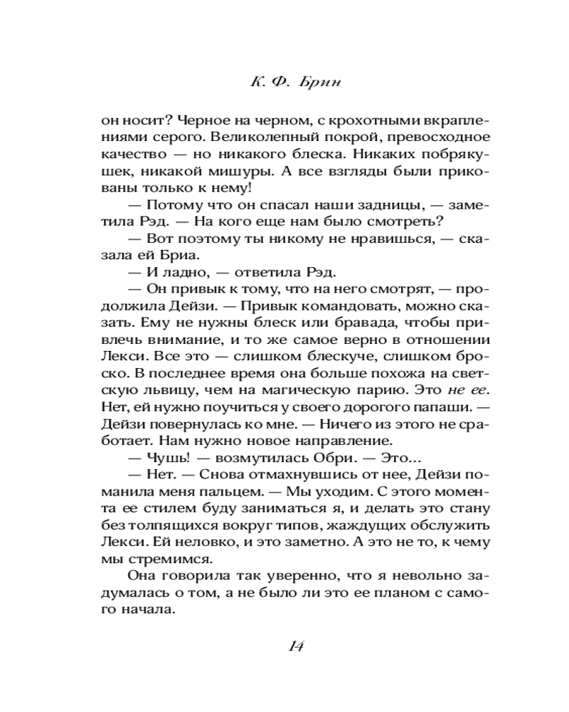 Серия: Бестселлеры К.Ф. Брин. Восхитительно темные сказки Настал час, к которому мы с Кираном так долго готовились. Встреча волшебников на высшем уровне. Готовы или нет, но мы поведем свою команду в самое логово зверя. Ставки выше некуда. Если власти не одобрят Кирана, он не получит официального титула Полубога Сан-Франциско. Однако реальная опасность грозит именно мне. Киран уехал на совещание, и мне придется преодолеть опасные коридоры «Саммита» только со своей командой и подопечными, борясь за социальное положение и статус, ожидая нападения со всех сторон. Я никак не могла представить, что на меня обрушится. Никто бы не смог. |