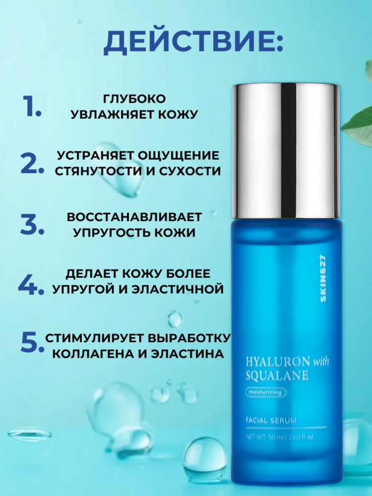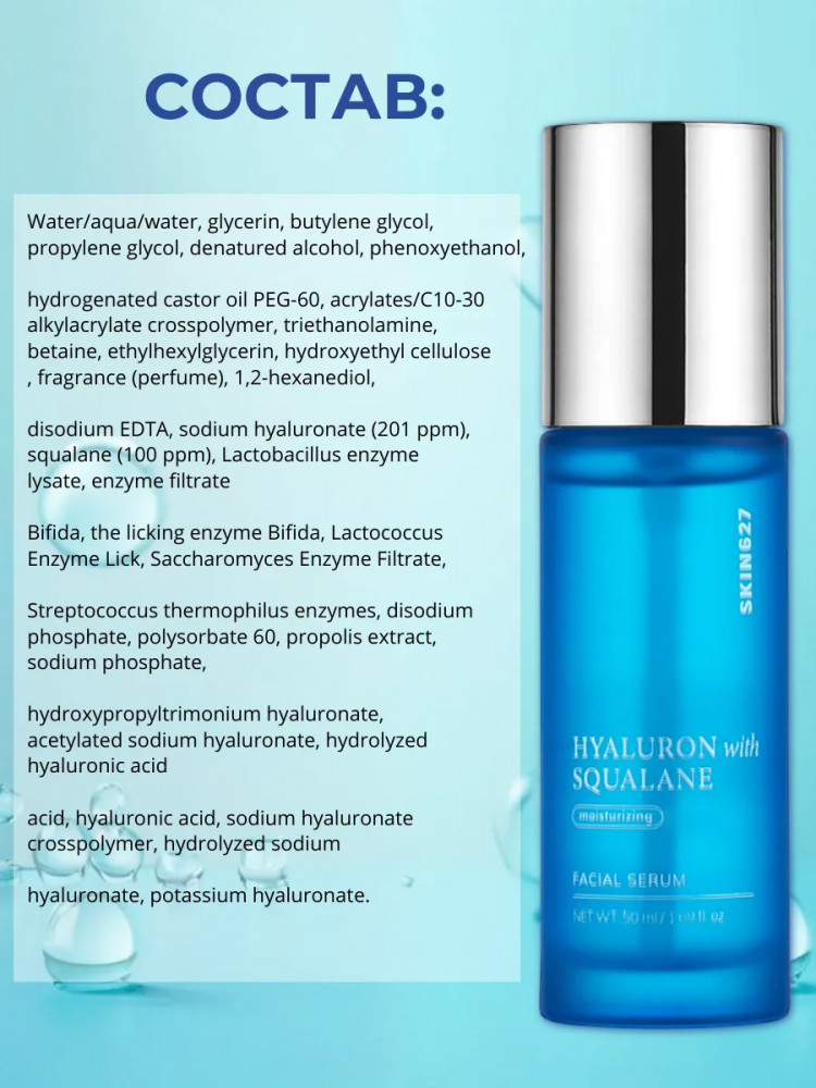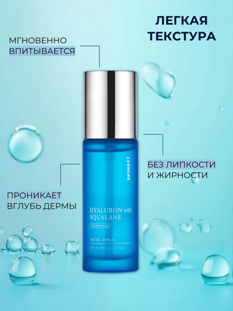 Skin627 Сыворотка для лица с гиалуроновой кислотой и скваланом увлажняющая «Moisturizing Serum with Hyaluron and Squalane»
