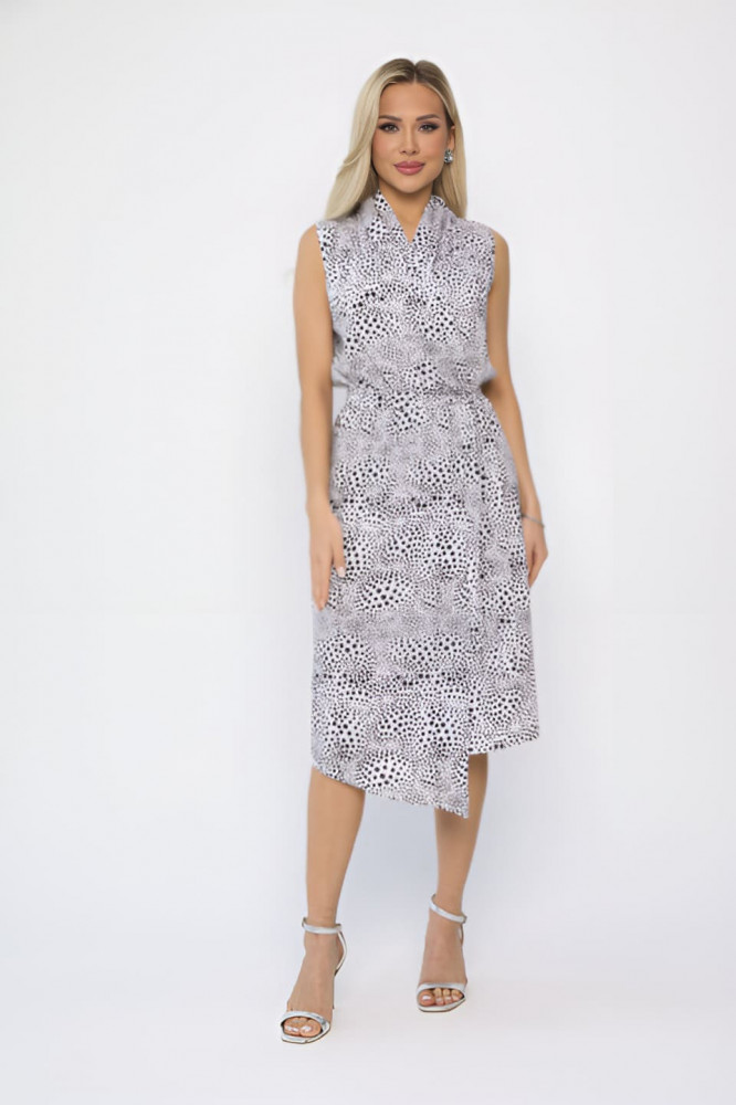 Элегантное платье без рукавов, выполненное в стильном дизайне на запах, идеально подходит для создания женственного образа. Драпировка на лифе придает изящество и подчеркивает фигуру, а резинка по линии талии обеспечивает комфортную посадку и акцентирует талию. Пояс в цвет платья завершает образ и добавляет нотку утонченности. Ассиметричный низ юбки добавляет динамики и оригинальности, делая это платье отличным выбором для особых случаев или повседневной носки. Сочетайте с любимыми аксессуарами и обувью для создания стильного ансамбля!